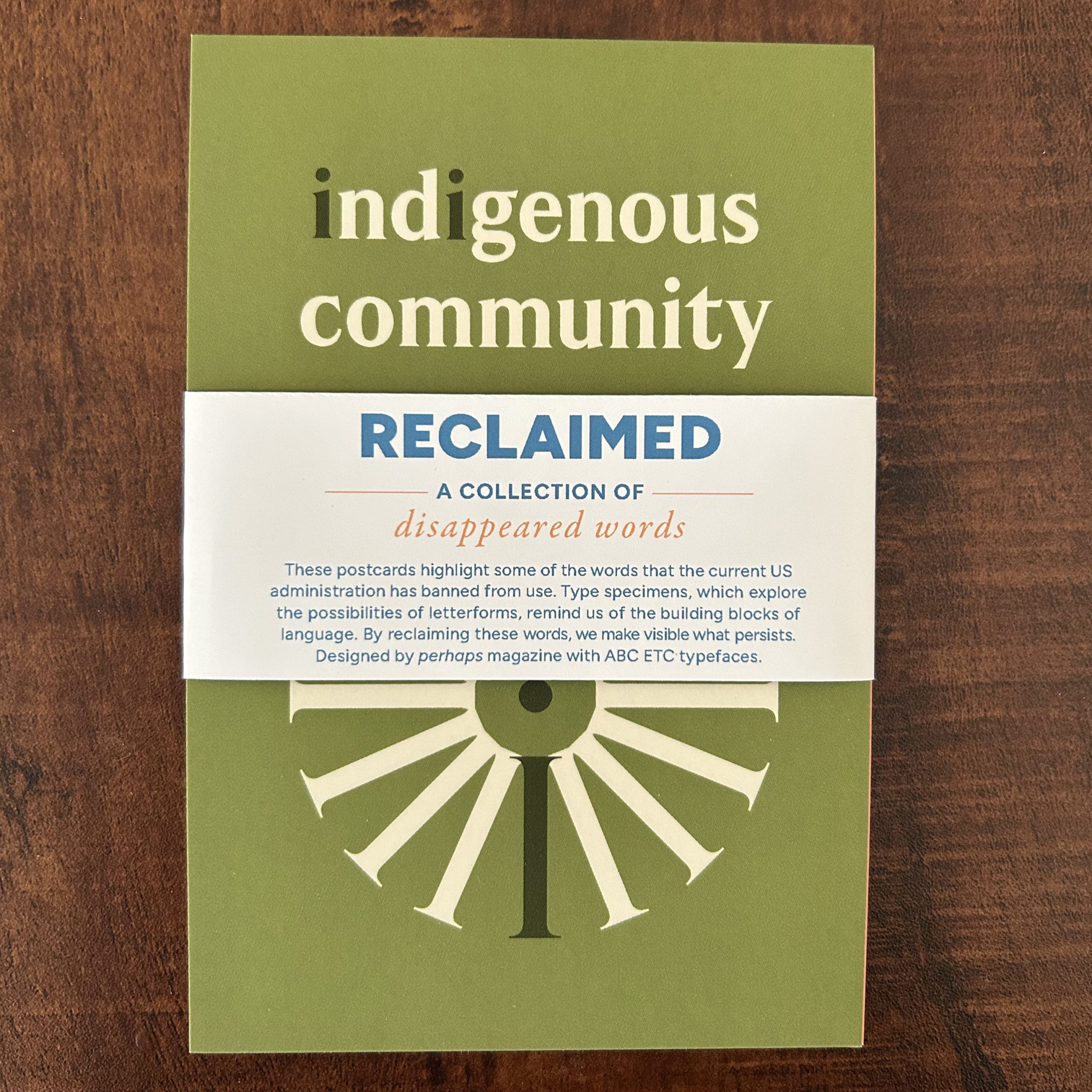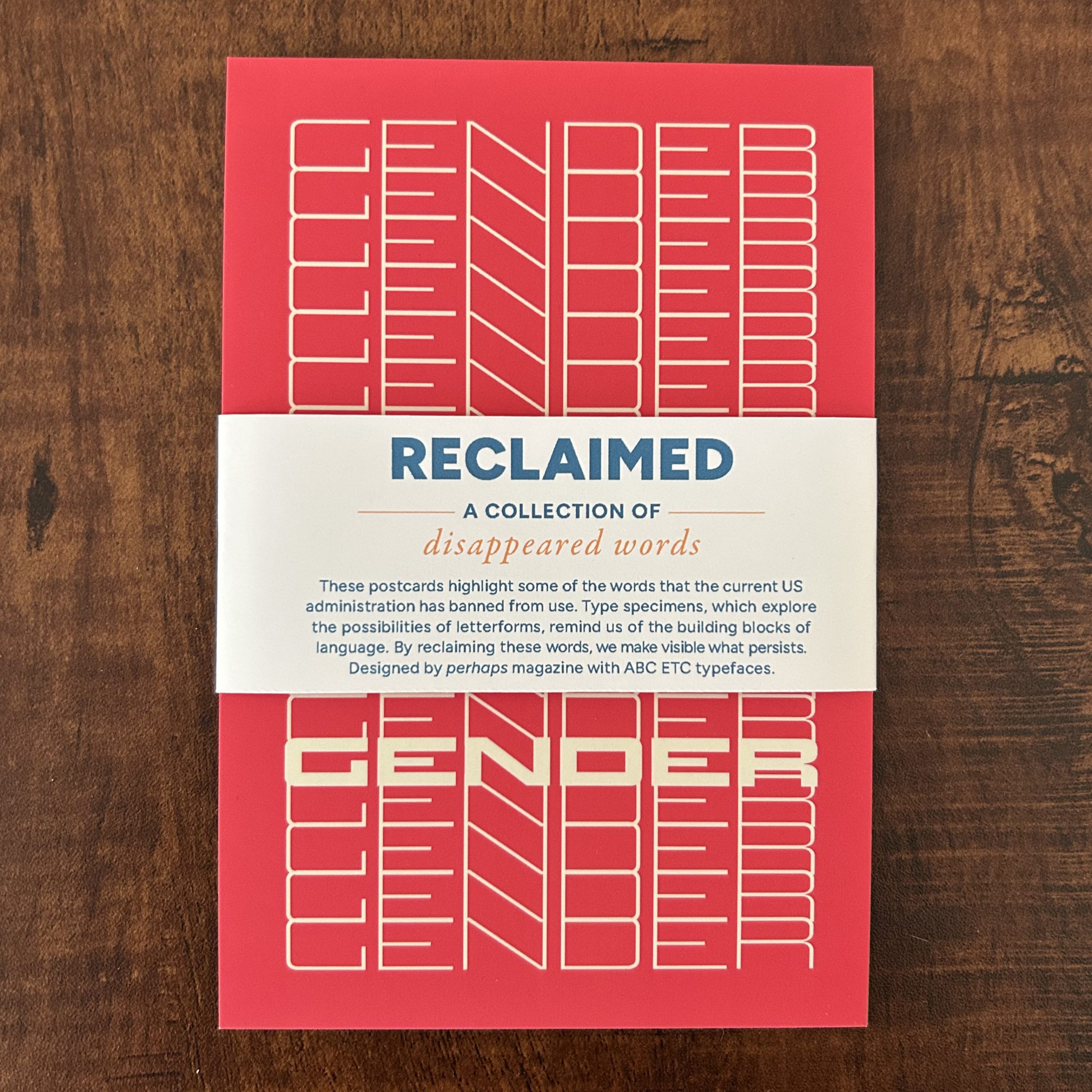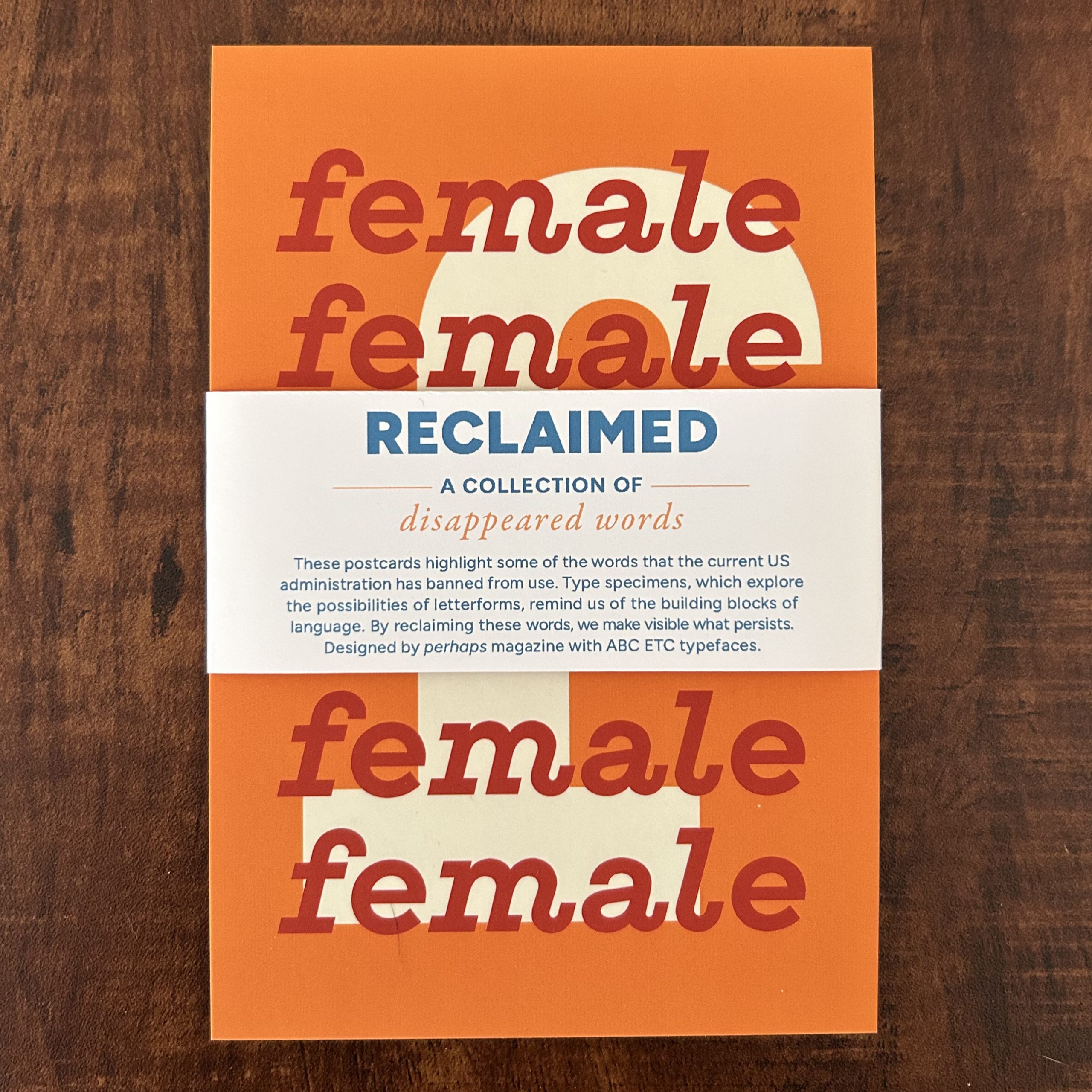 The Reclaimed collection highlights some of the words that the current US administration has banned from use. Designed by perhaps magazine with ABC ETC typefaces.